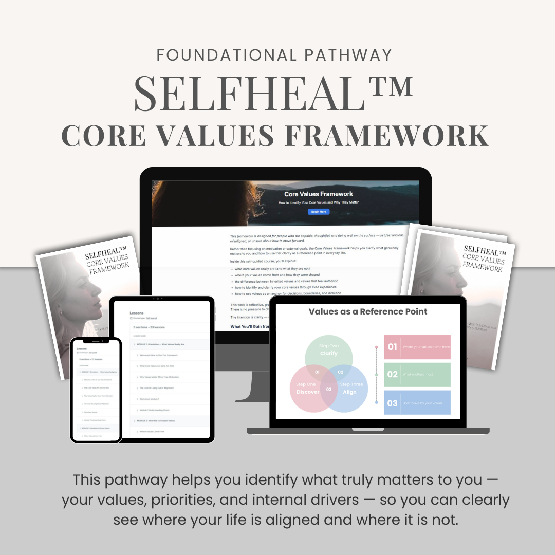 • Begin making intentional, grounded decisions that reflect who you truly areThis framework becomes the compass for your entire SELFHEAL™ journey.